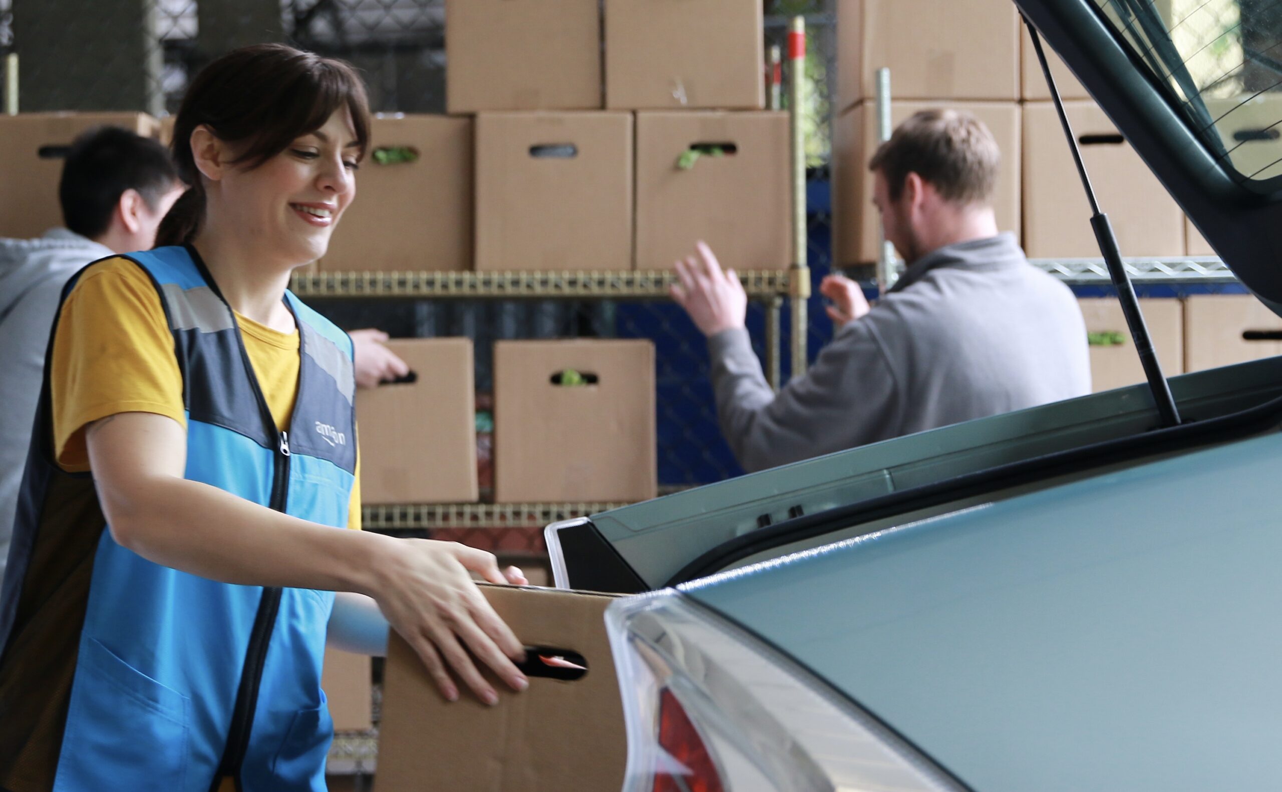 About 80% of the work that Amazon does with food banks is through its Flex program, in which drivers using their personal vehicles collect food from a food bank site and deliver it to homes within a specific radius.